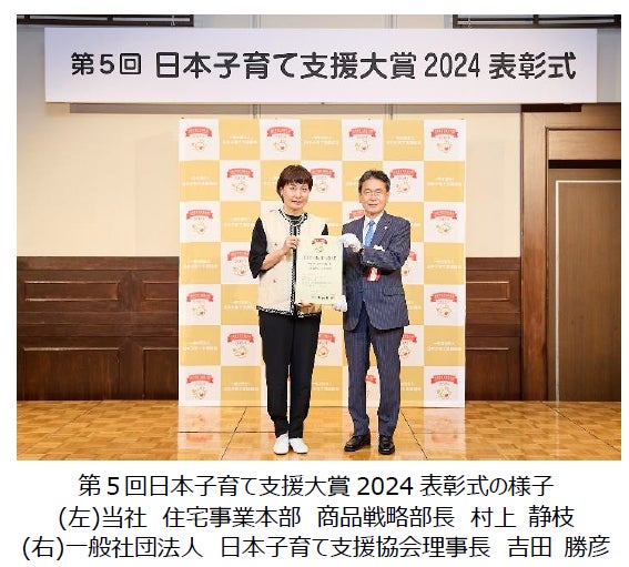 本取組みは、普段目に入りにくい場所に保管されている防災グッズや備品を普段から利用する動線上の一部に保管することで、有事の際にすぐ対応できるように意図した取組みです。加えて、普段から防災グッズを目にする子どもたちも防災に対する関心が生まれ、家族のコミュニケーションにつながることや、防災意識向上に寄与することが評価され、日本子育て支援協会が主催する、第5回日本子育て支援大賞を受賞しました。今後も当社は、災害に強い住まいをお届けすることに加え、住む人々の防災意識を醸成する取組みを拡大してまいります。