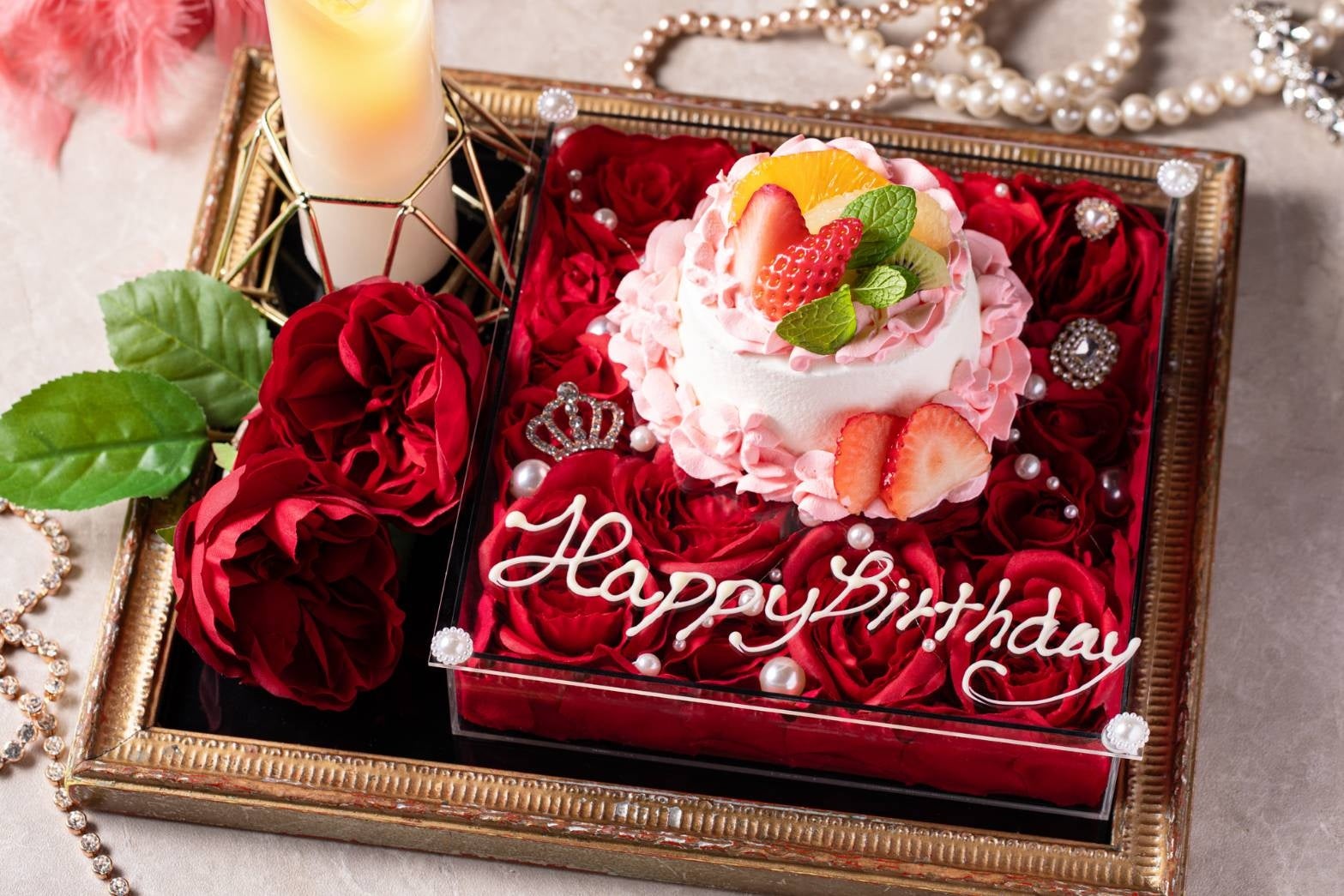 メッセージ入り 薔薇BOXのキャンドル額縁ケーキ