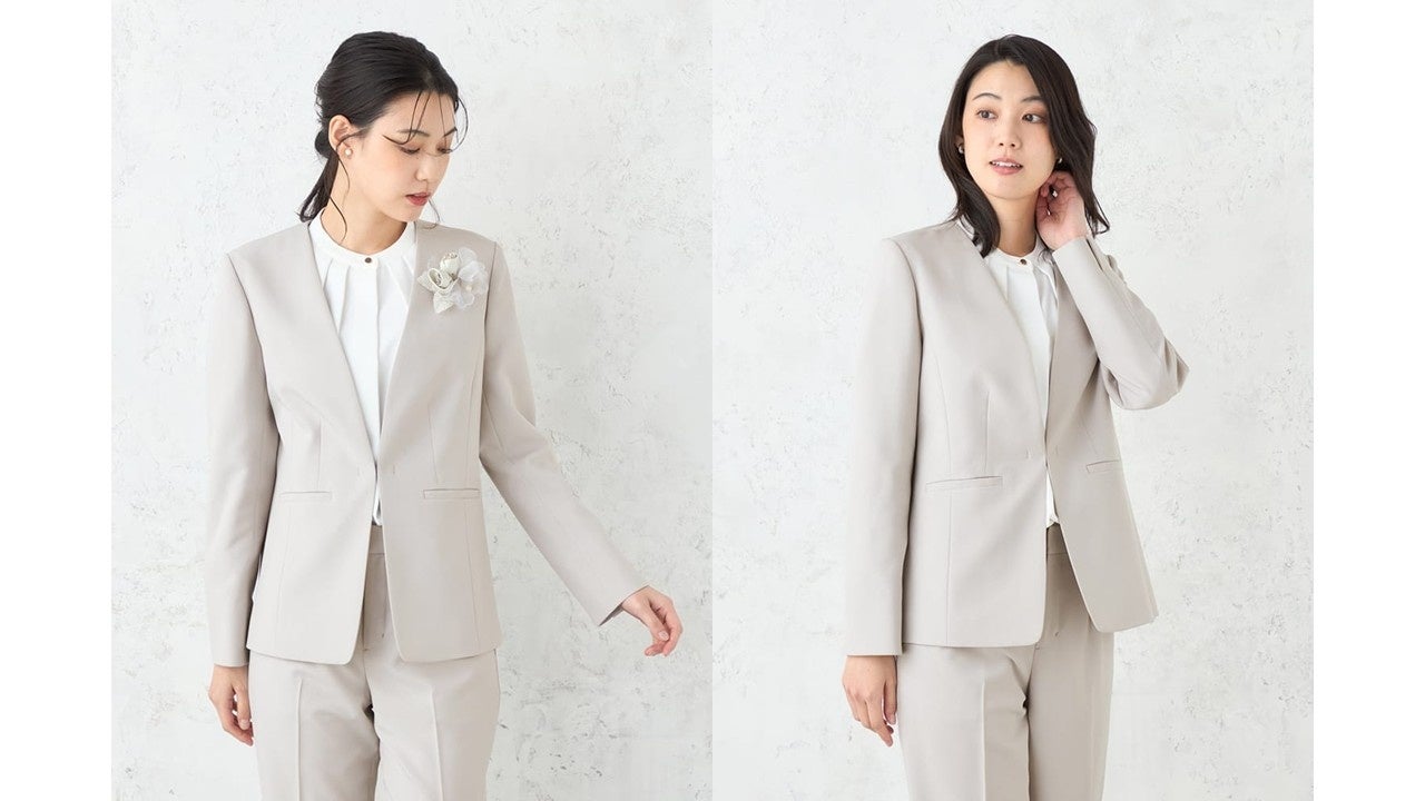 機能面においても、表地には2WAYストレッチ素材を採用し、長時間の着席や移動も快適に過ごせる実用性を備えています。シックで落ち着いたネイビーと、優しい印象のベージュの2色展開であるために、幅広い年代の方にもご利用いただけます。このワンセットで、人生の特別な瞬間を美しく、そして快適に彩ることができる、まさに「お得な安心セット」です。