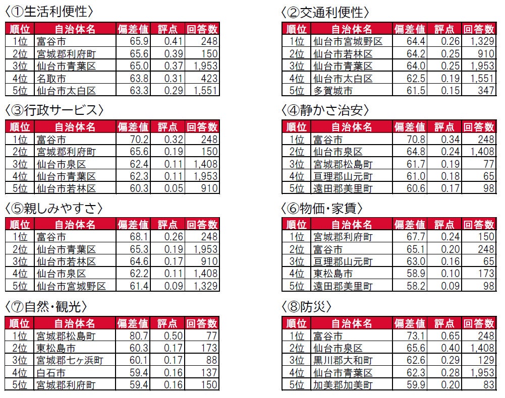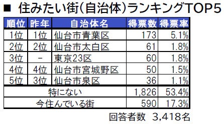 •「住みたい街(自治体)ランキング」は、宮城県居住者による全国の自治体を対象とした2022年回答を集計しました。