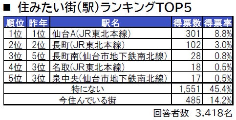 ■住みたい街(駅)トップは、4年連続で仙台A