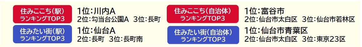 •新聞・雑誌、テレビ・ラジオ等の報道関係者におかれましては、本リリースを掲載・報道または引用する場合には、「いい部屋ネット 街の住みここちランキング&住みたい街ランキング2022<宮城県版>」と出所の表記をお願いします。