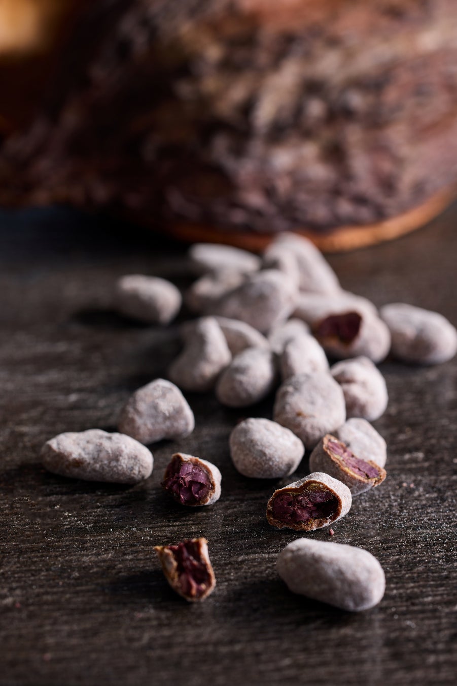 一つひとつ丁寧に皮剥きしたウガンダ産カカオ豆をキャラメリゼし、カカオのフレッシュな味わいを引き立てるバランスの良いショコラオレで包み込みました。