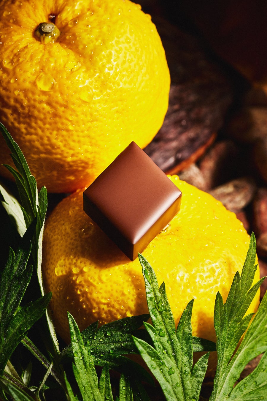 柑橘が持つハーブのような香りや独特のえぐみ。そのえぐみをあえて深め、旨味へと昇華させることで、より奥行きのある味わいを追求したショコラに仕上げました。