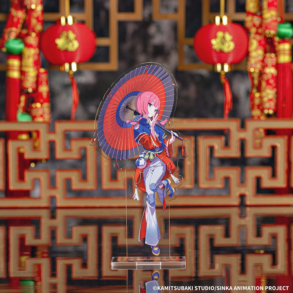 本商品は、KAMITSUBAKI STUDIOによるオリジナルIPプロジェクトから生まれたTVアニメ『神椿市建設中。』のくじです。「夜河世界」の八咫烏衣装が初めてフィギュア化されるほか、「森先化歩」「谷置狸眼」「朝主派流」「夜河世界」「輪廻此処」の5人が、「ネオチャイナ衣装」をテーマにPHASE STUDIO所属イラストレーターりたお氏による限定描き下ろしイラストで登場します。キャラクターごとに異なるデザインのネオチャイナ衣装は、細部まで丁寧に描かれた細やかな装飾と華やかな色味が特徴的で、個性が際立ち作品の新たな魅力を引き立てます。ファン必見の、キャラクターと世界観を存分に堪能できます。