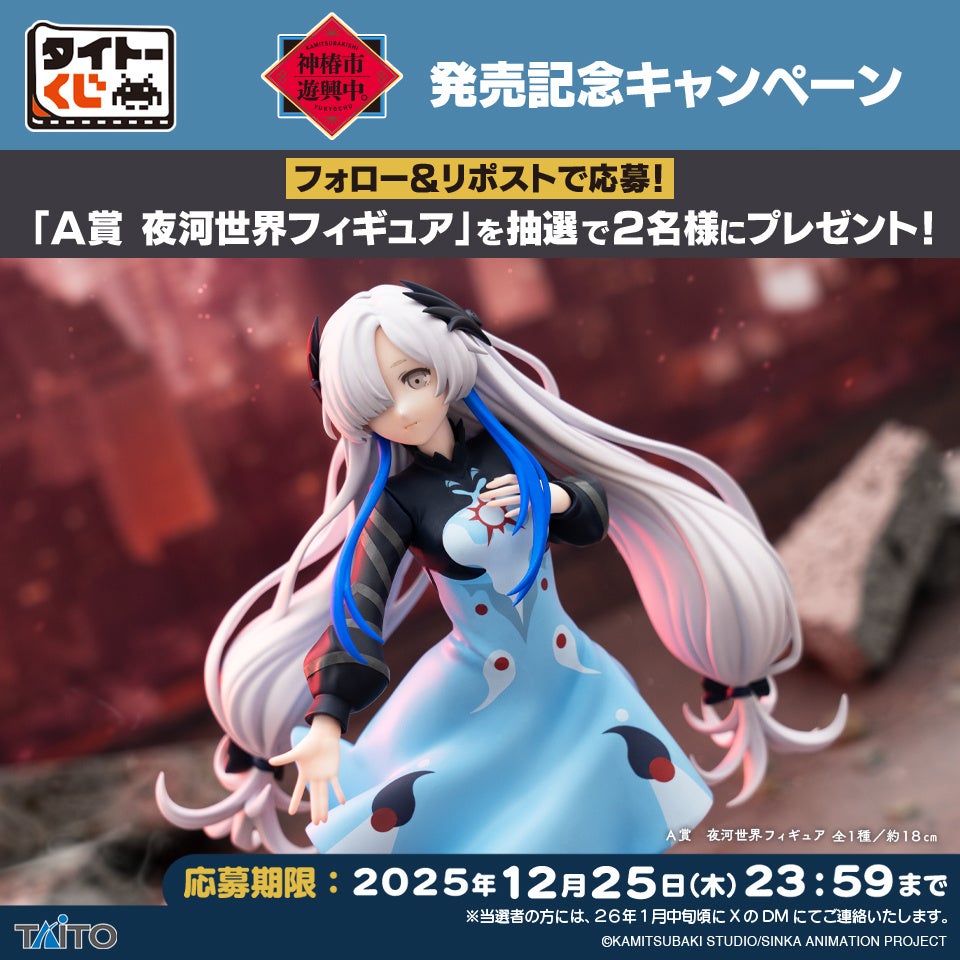 「タイトーくじ 神椿市遊興中。」の発売を記念して、「A賞 夜河世界フィギュア」を抽選で2名様にプレゼントするキャンペーンを実施いたします。