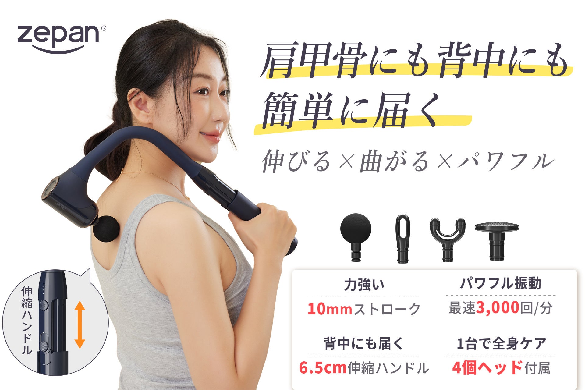 Point1|6.5cm伸縮ハンドルで背中にもラクに届く