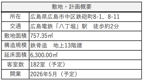 中長期滞在型ホテル「東急ステイ」広島に初進出八丁堀駅徒歩 2 分の事業地にて今月着工、2026 年 5 月開業予定