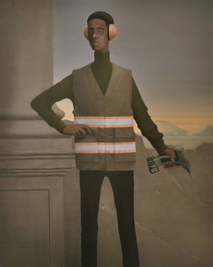 新作“Survive”シリーズでは、レスキュー隊の女や土木作業員等の働く人々にスポットをあて、古典的な貴族や英雄の肖像画作品に見られるポージングのオマージュや寓意的な表現、それらを用い、現代の労働者の姿を描き出しました。