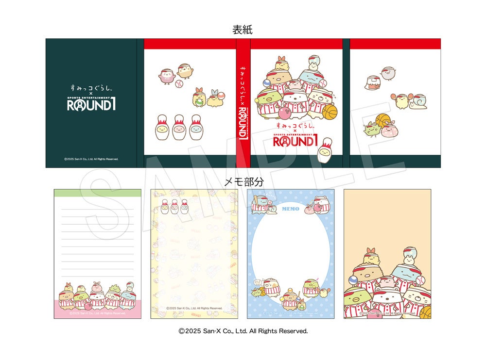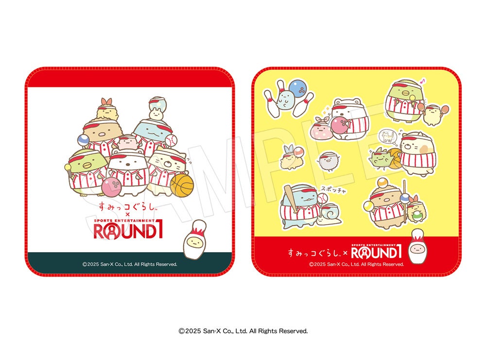 ラウンドワンの制服に着替えたすみっコたちのコラボならではの新作アイテムが多数登場します。