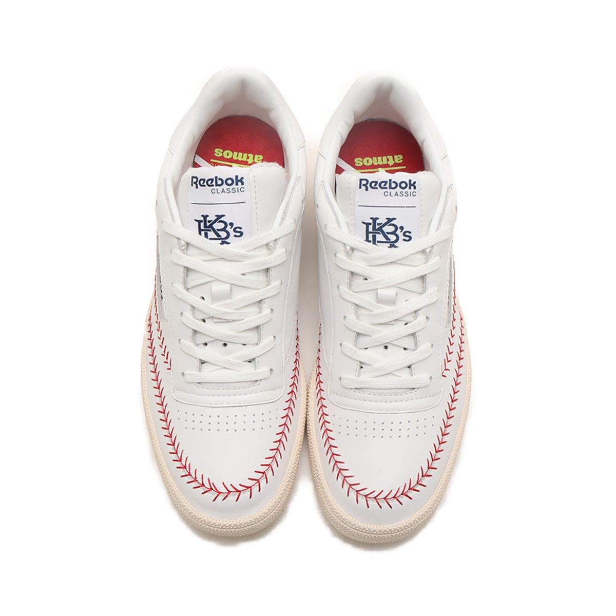 今作は「KEBOZ」のブランドアイコンである野球からボールをイメージし、シュータンやライニング含めたアッパー全体をホワイトのレザーで構築。トゥー周りとサイドの切り返し部分に野球ボールを象徴するレッドのステッチを施しています。シュータンラベルとClub Cの特徴的なウィンドウロゴには「KEBOZ」のブランドロゴがあしらわれています。インソールには3社のロゴを組み合わせたスペシャルロゴを採用した今作は、日本国内限定発売です。