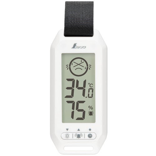 熱中症の注意レベルを大型液晶の文字、アイコンと音でお知らせする温湿度計です。