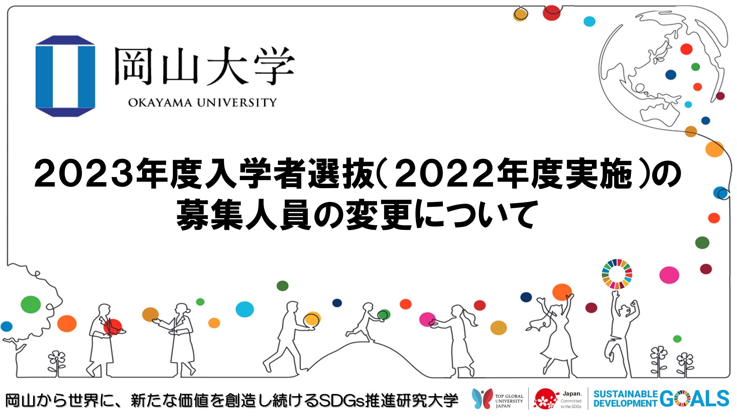 【岡山大学】2023年度入学者選抜(2022年度実施)の募集人員の変更について