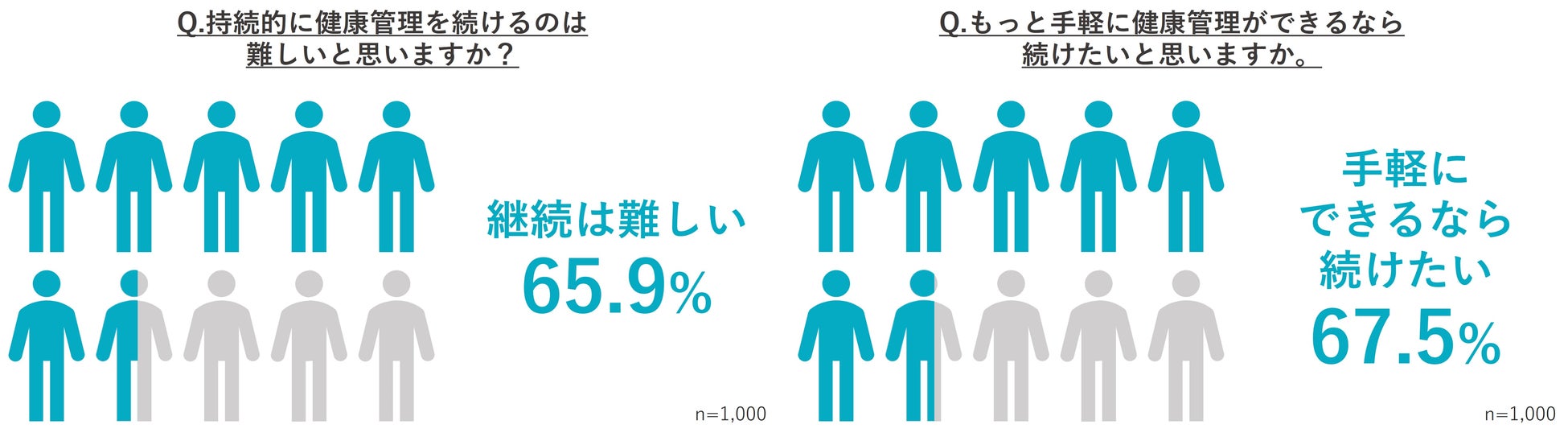 ●全体の65.9%が「持続的に健康管理を続けるのは難しい」と考えつつも、67.5%が「もっと手軽に健康管理