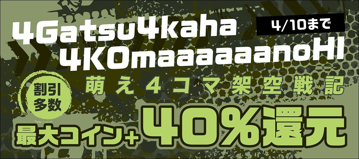 ①期間中対象の4コマ漫画作品(6,000冊以上)を購入すると最大40%のコインを還元します。