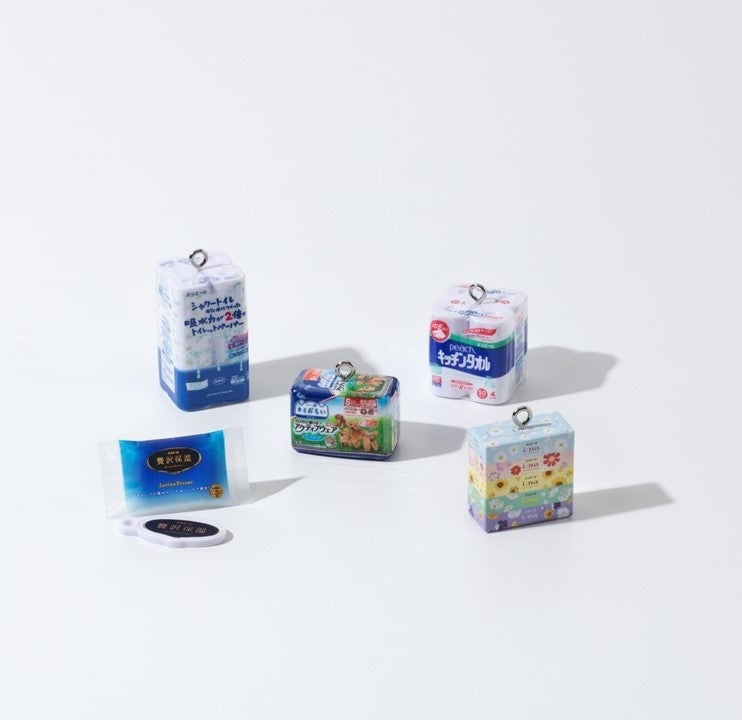 第四弾となる今回は、第二弾からラインナップを広げ、「エリエール」を代表する新たな5つの人気商品が、まるで本物のように再現されたボールチェーン付きのミニチュアチャームとして全国のカプセル自販機に並びます。