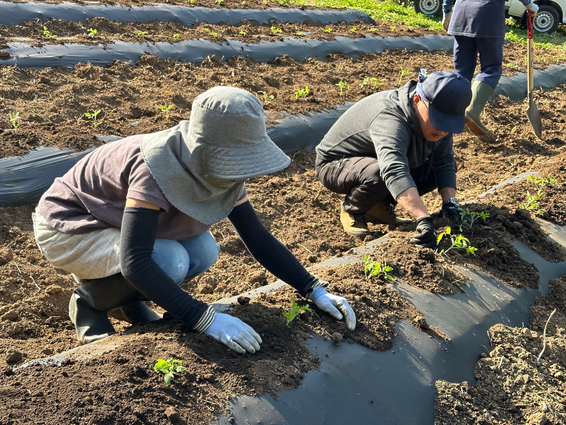 弊社は定植や収穫のスケジュール管理など計画的労働参加の裏方を色々と行なっていますが、昨年収穫のお手伝いをした時に、カニのような横歩きでの作業が多く、腰を痛めた結果、生産者さんたちのご苦労をうかがい知ることができました。今後ともみなさんの助けになれるよう、100周年に向かって、計画的労働参加の一端を担っていきたいと思います。