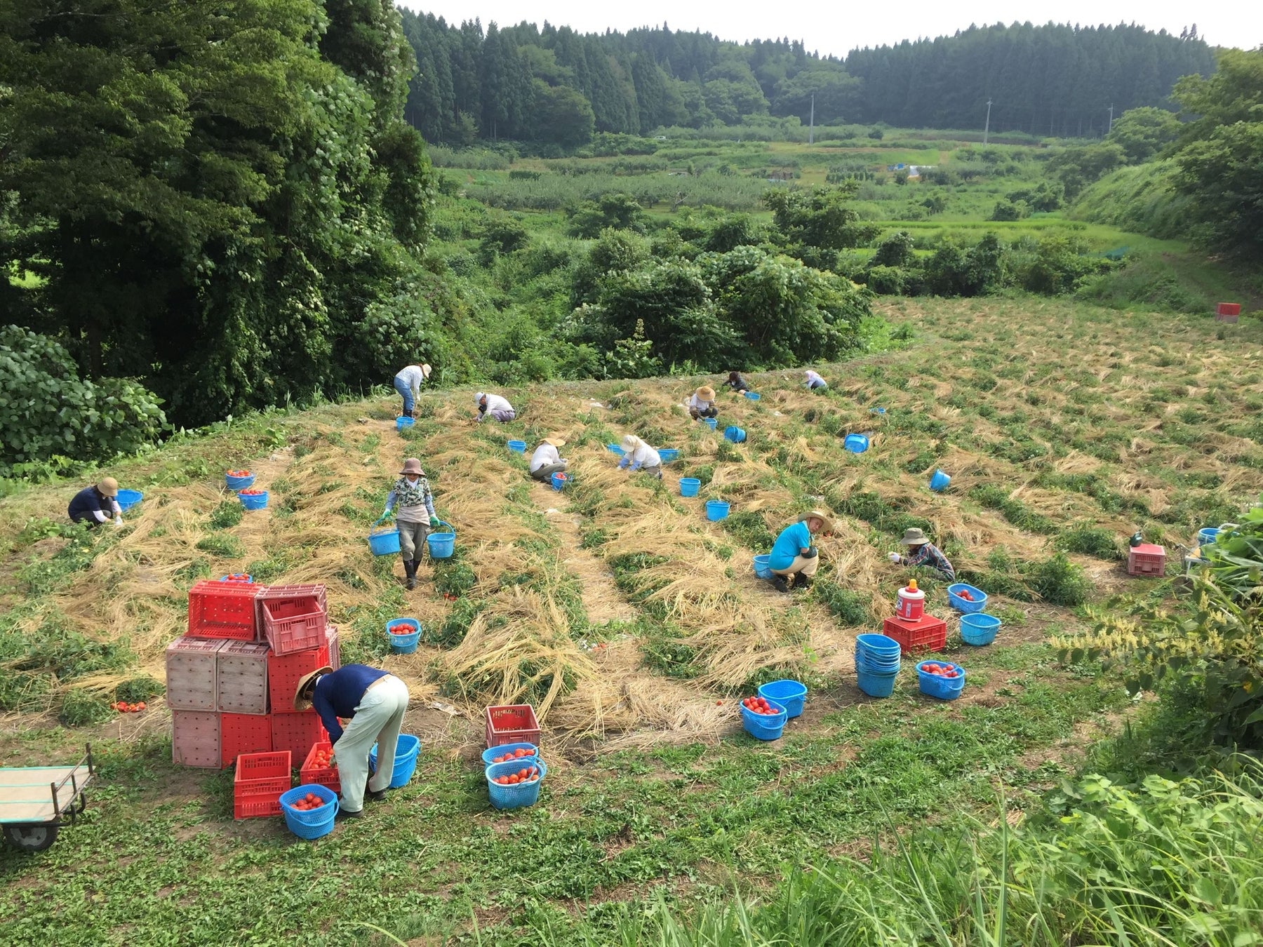 完熟した実を収穫する加工用トマトは、色がよくわかる昼間に収穫しろと言われ、これが収穫をさらに大変なものにしています。この炎天下での大変な収穫作業をお手伝いしてくださる計画的労働参加は素晴らしいです。これがなかったらお手上げという農家は正直あると思います。そして農家人口の減少を止めるには、やはり農業をやって、きちんと満足できる対価が得られるという世の中になっていかなければならないと感じています。