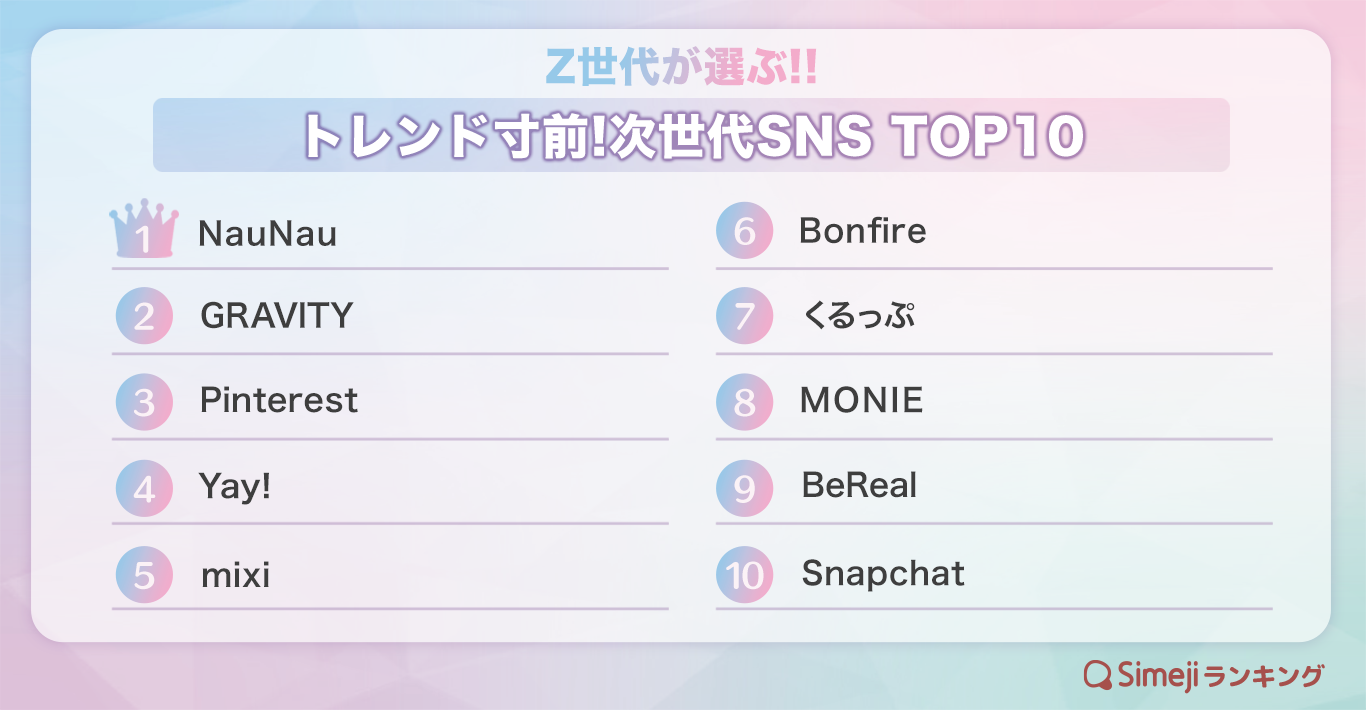 【Simejiランキング】Z世代が選ぶ!!「トレンド寸前!次世代SNS TOP10」