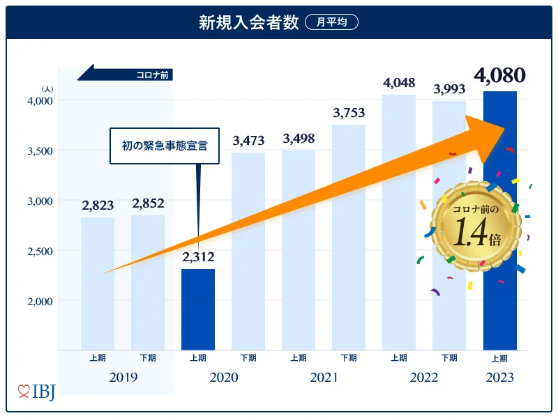 IBJ結婚相談所における2023年上期の新規入会者数は月平均4,000名超(コロナ前の1.4倍)となったことで、お見合い成立数が月間60,000件に迫る勢いで増加しています。その一方で、お見合い場所として人気のあるホテルラウンジは事前予約ができないことも多く、日程調整に時間を要していました。