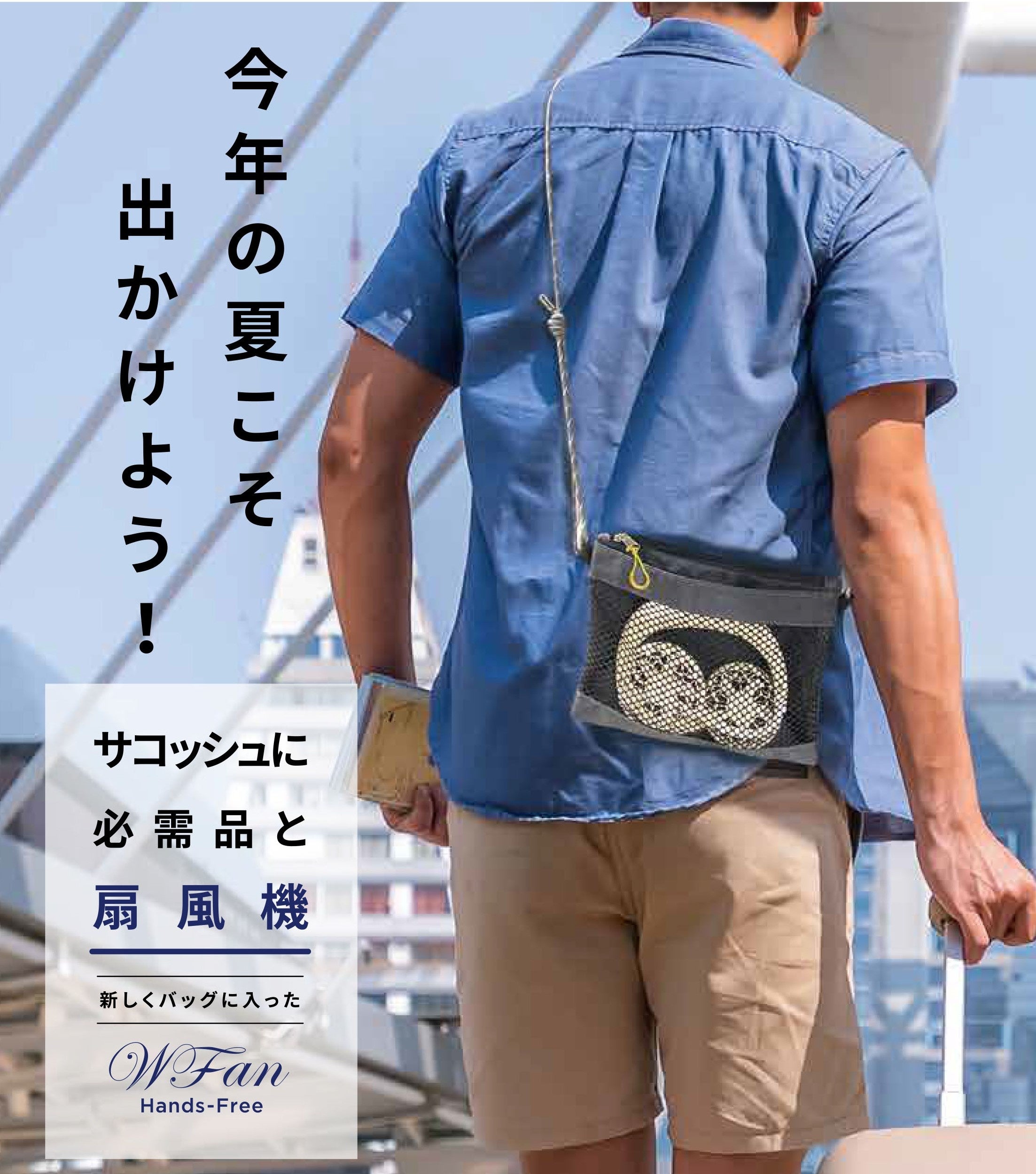 2023年は、個人が本当に自分のやりたいことを自由に楽しむ「ノーノーマルな旅行」がトレンドになると言われています。そんな新時代にぴったりな「WFan&サコッシュセット」はポケットに必需品を入れてそのままお出かけ。暑い時に扇風機をさっと取り出して使えます。そして、WFanは安全性の高いニッケル水素電池を使用しています。飛行機での持ち込み、預け入れ荷物とともに制限がなく誰もが安心してご使用いただけます。