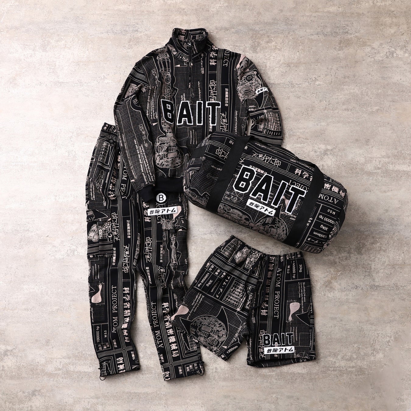 各所にBAITと鉄腕アトムのブランドロゴが配置され、スケマティックをテーマにアトムの設計図がすべてのアイテムにパッチワークされたデザインとなる。