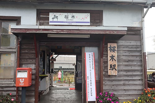 - 桜木駅の風情ある駅舎に馴染む柔らかな水彩画風のタッチ