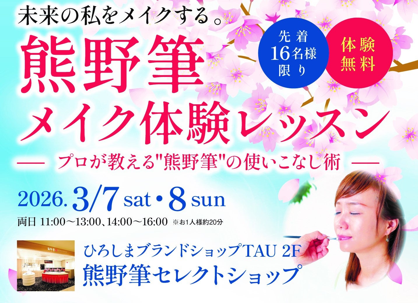【開催日】2026年3月7日(土)、3月8日(日)【場所】ひろしまブランドショップTAU 2階 熊野筆セレクトショップ銀座店