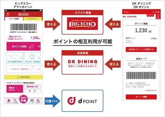 ・ポイントは、ビッグエコーに限らず、当社が運営する全国の飲食店舗「DKダイニング」でも利用できます*2 。