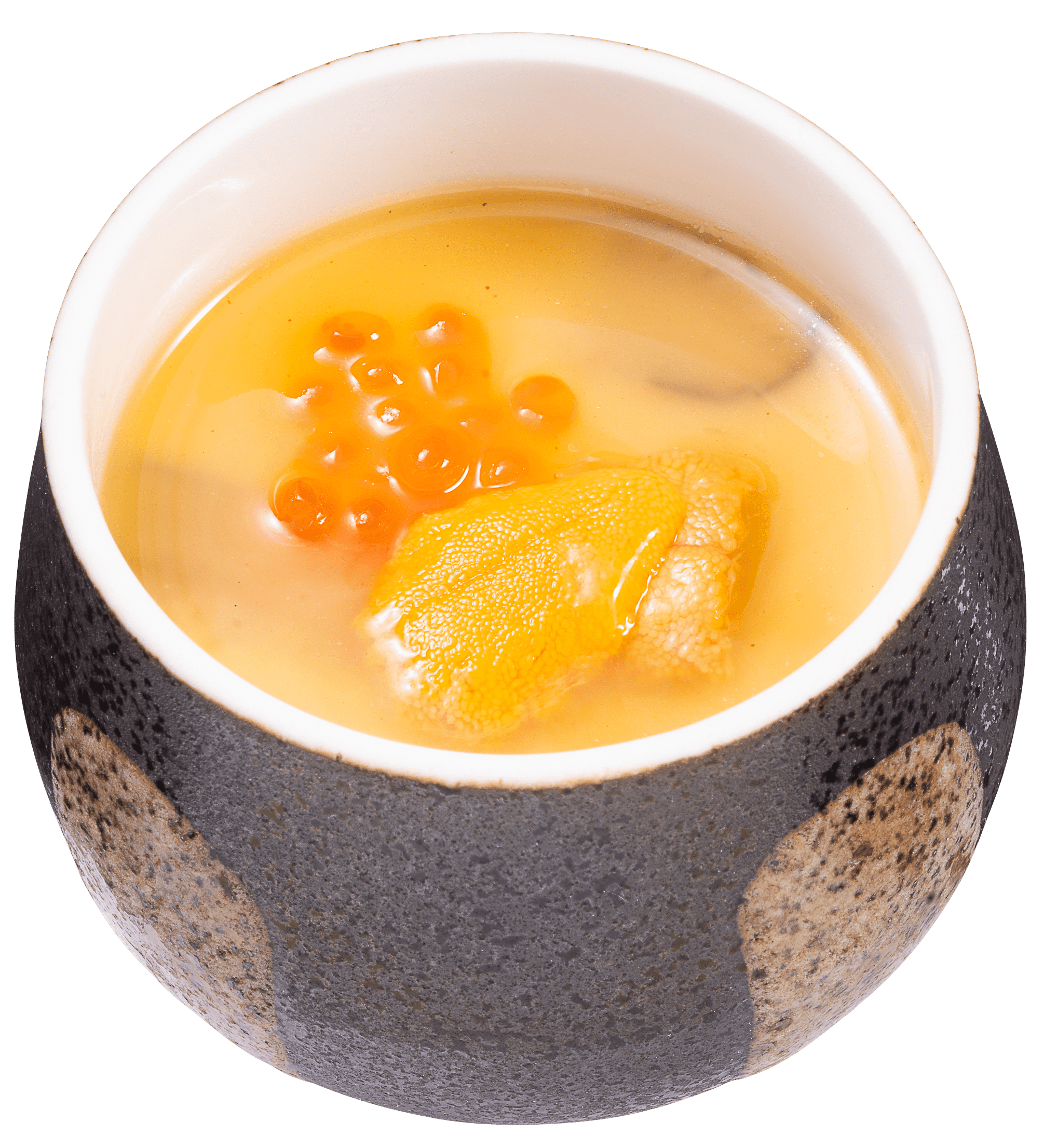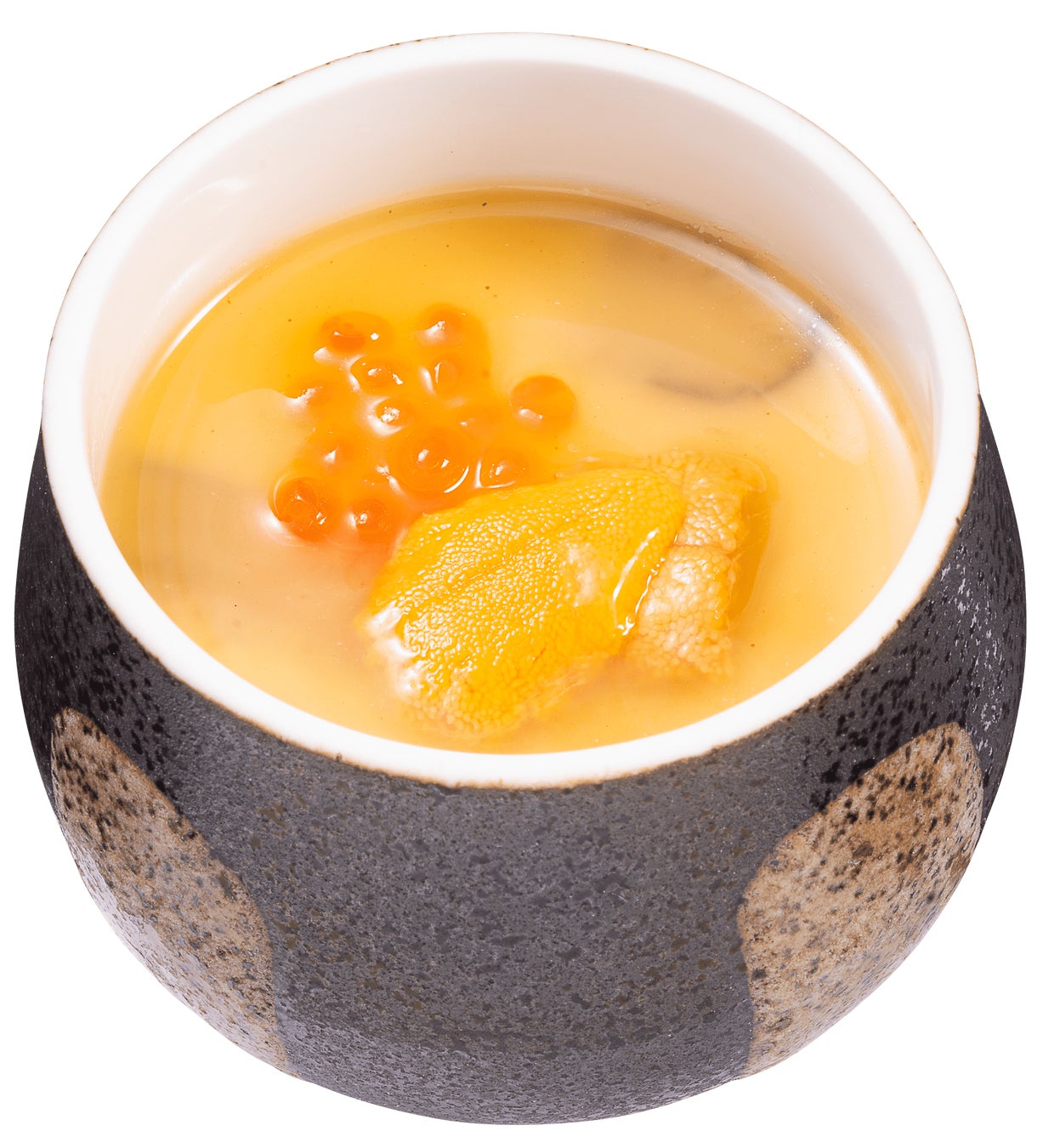滑らかな舌触りと出汁の効いた茶碗蒸しと、うにといくらの調和が絶妙な一皿です。