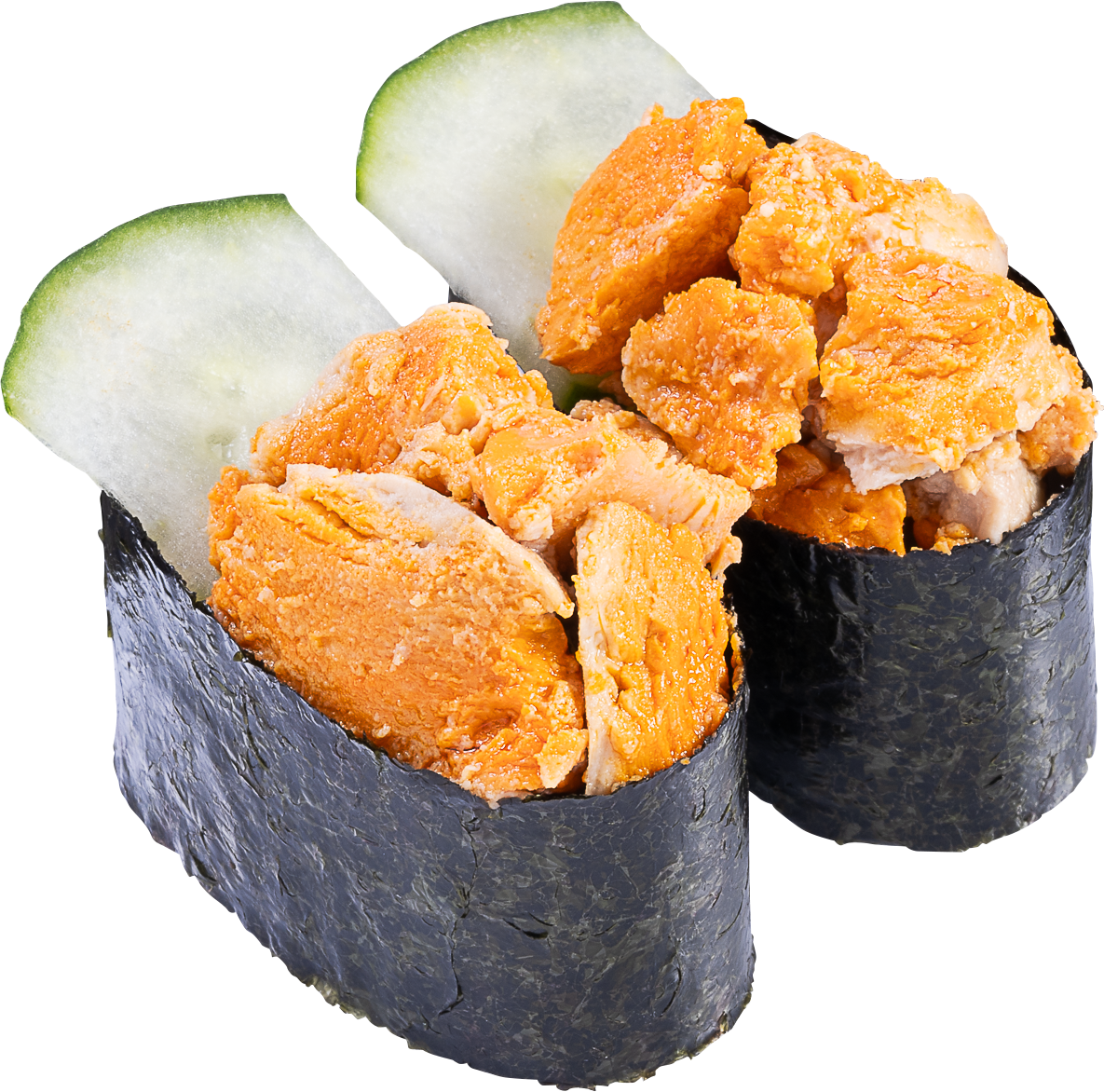濃厚なコクのあるあん肝の旨みときゅうりの食感が相性の良い軍艦です。