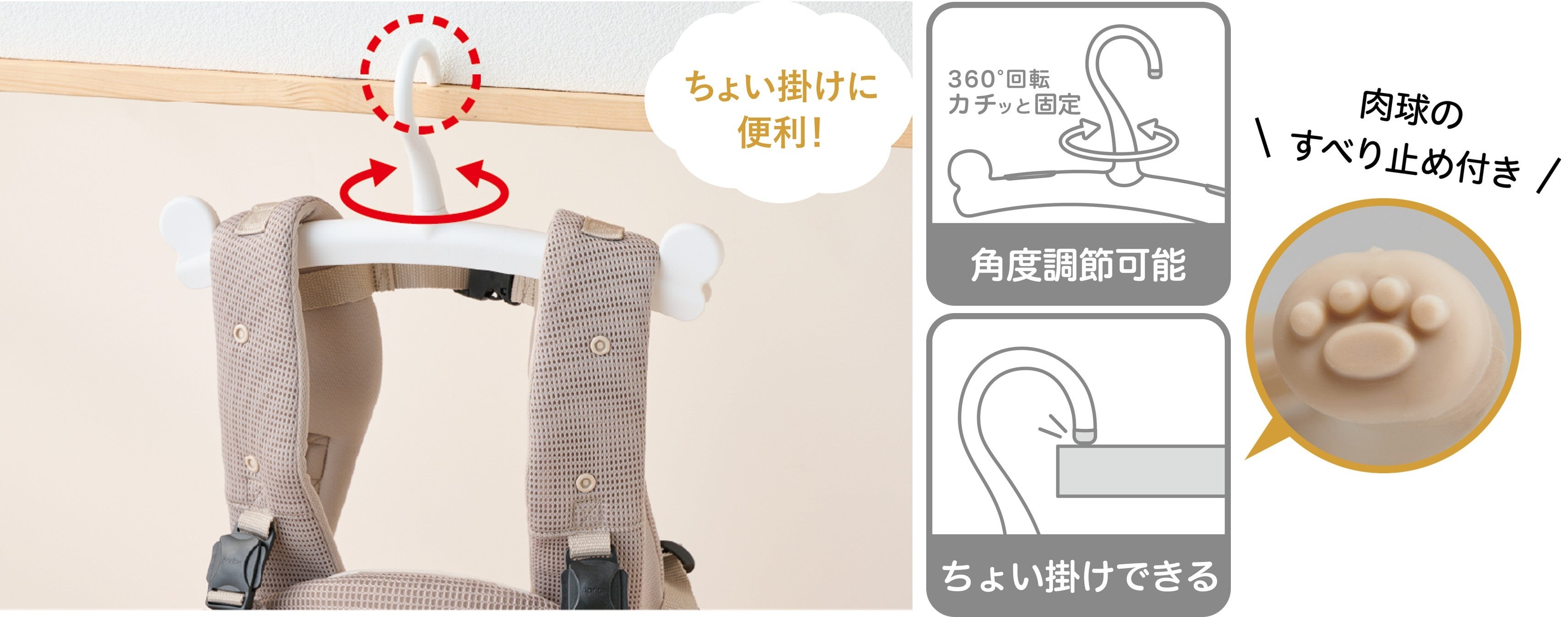 POINT2:フックは360°回転!掛けたい場所に合わせて調節可能