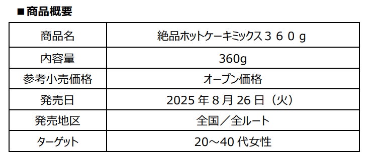 もっちり感がありつつ柔らかさのある“もちやわ食感”を追求した「絶品ホットケーキミックス360g」の発売で、お客様に笑顔をお届けしてまいります。