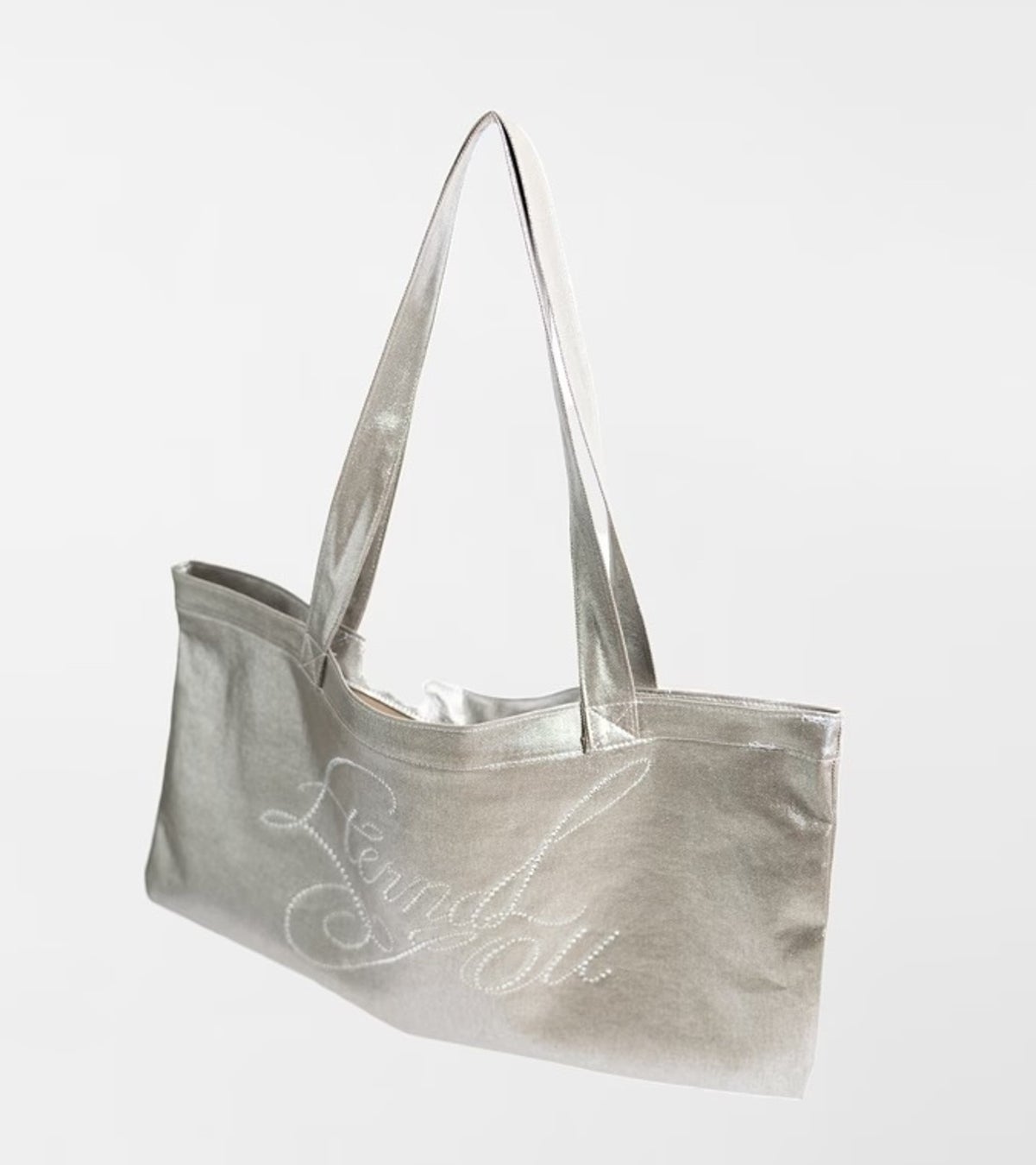 豊富な19色展開が魅力のワイドコットンバッグ。ポイントのレタリングロゴとユニークな横長デザインで、幅広いコーデに合わせやすい。