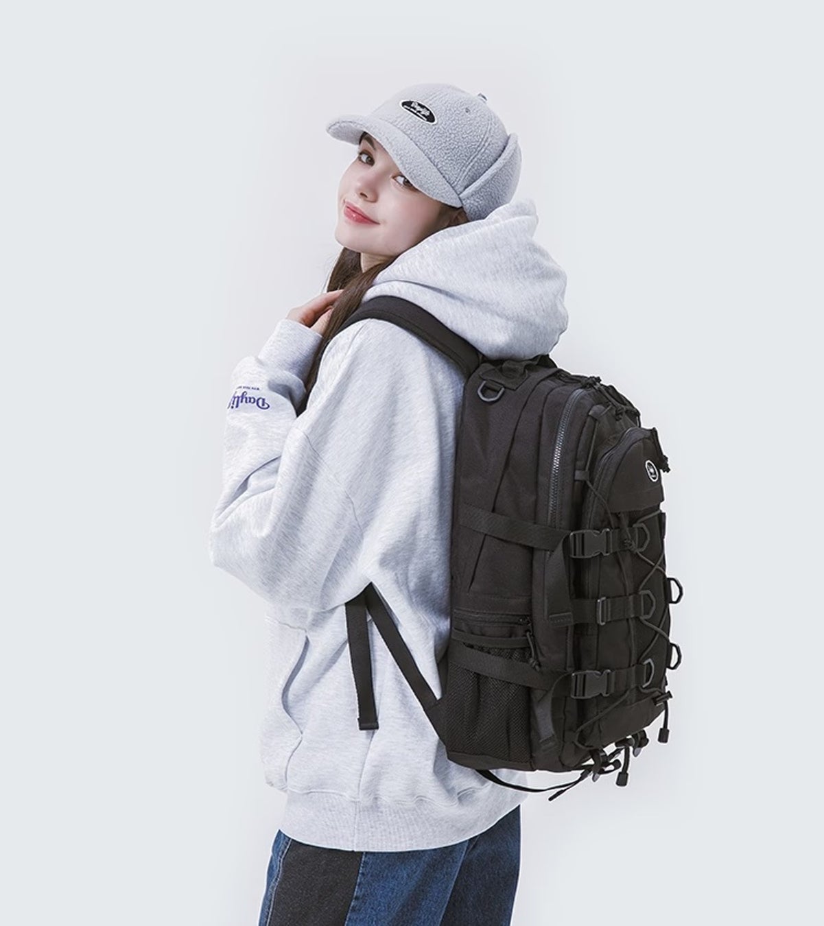 ラップトップや小物など用途別に使いやすい6種のポケットですっきり収納。チェストベルトやキャリアストラップなど機能面も充実。