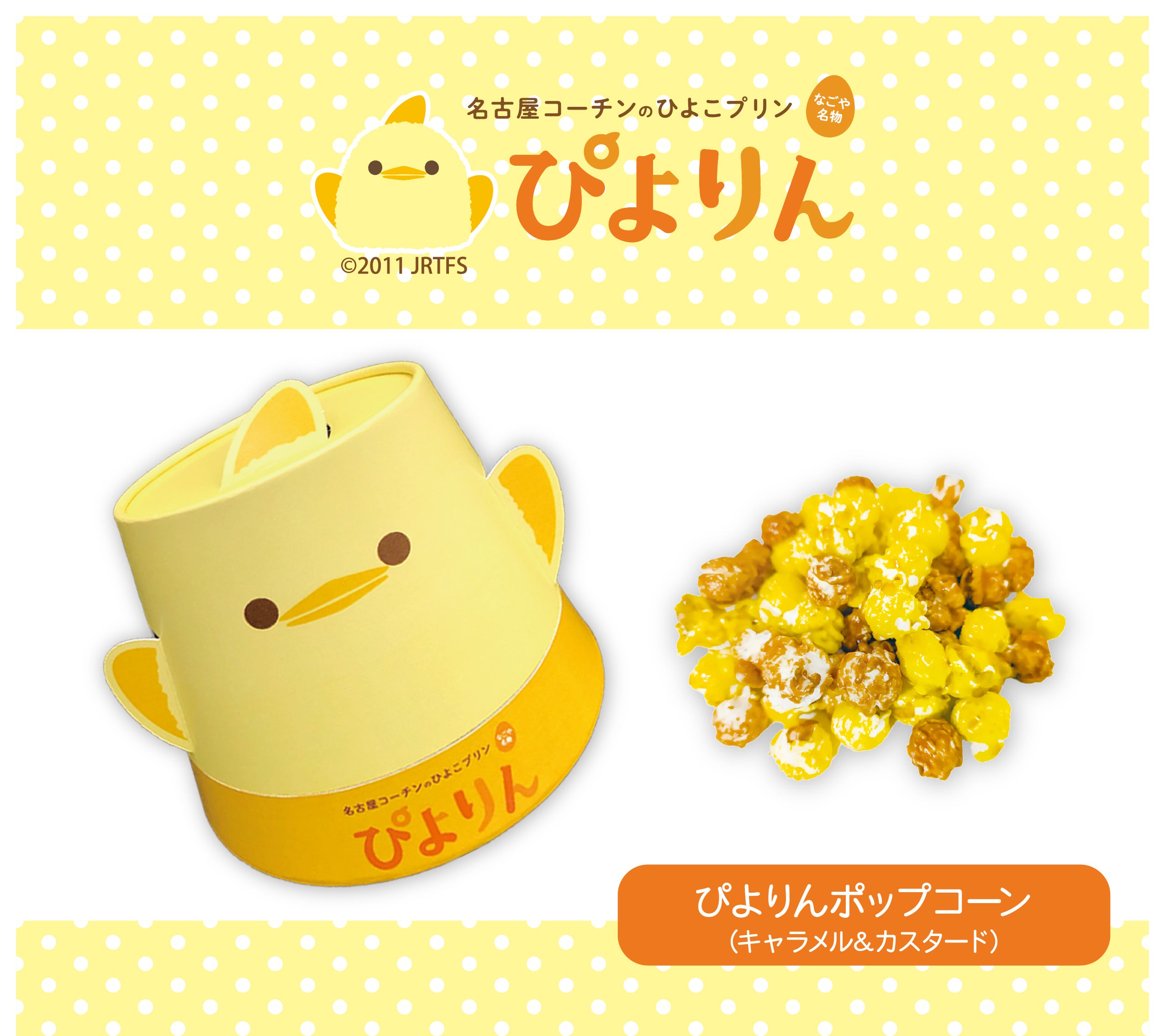 なごや名物!名古屋コーチンのひよこプリン「ぴよりん」をイメージした、キャラメル&カスタード味の「ぴよりんポップコーン」が新登場!