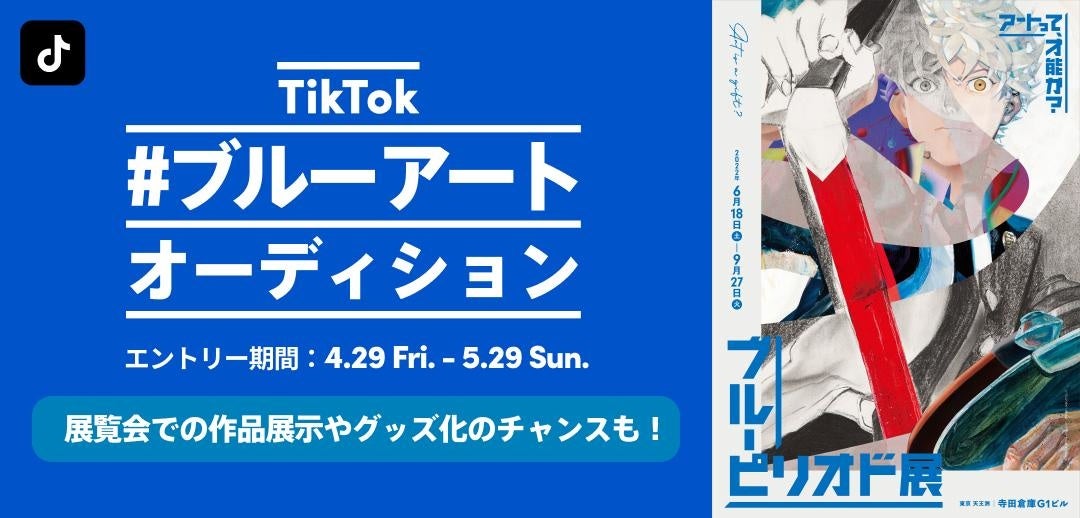 ショートムービープラットフォーム「TikTok(ティックトック)」は、漫画・アニメで人気を博す「ブルーピリオド」の展覧会『ブルーピリオド展~アートって、才能か?~』とコラボし、若手アーティスト発掘オーディション、「ブルーアートオーディション」を4月29日(金)午前10時より開催します。