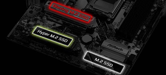 【ストレージ】SATA3、Blazing M.2(Mキー、PCIe Gen5x4)、Hyper M.2(Mキー、PCIe Gen4x4) 搭載