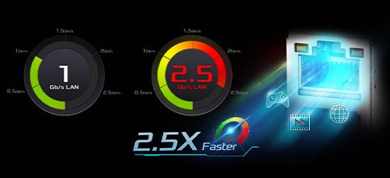 インテリジェントな 2.5Gb/s LAN プラットフォームは、ホームネットワーキング、コンテンツクリエイター、オンラインゲーマー、そして、高品質ストリーミングメディアなどの大容量通信にも十分なパフォーマンスです。