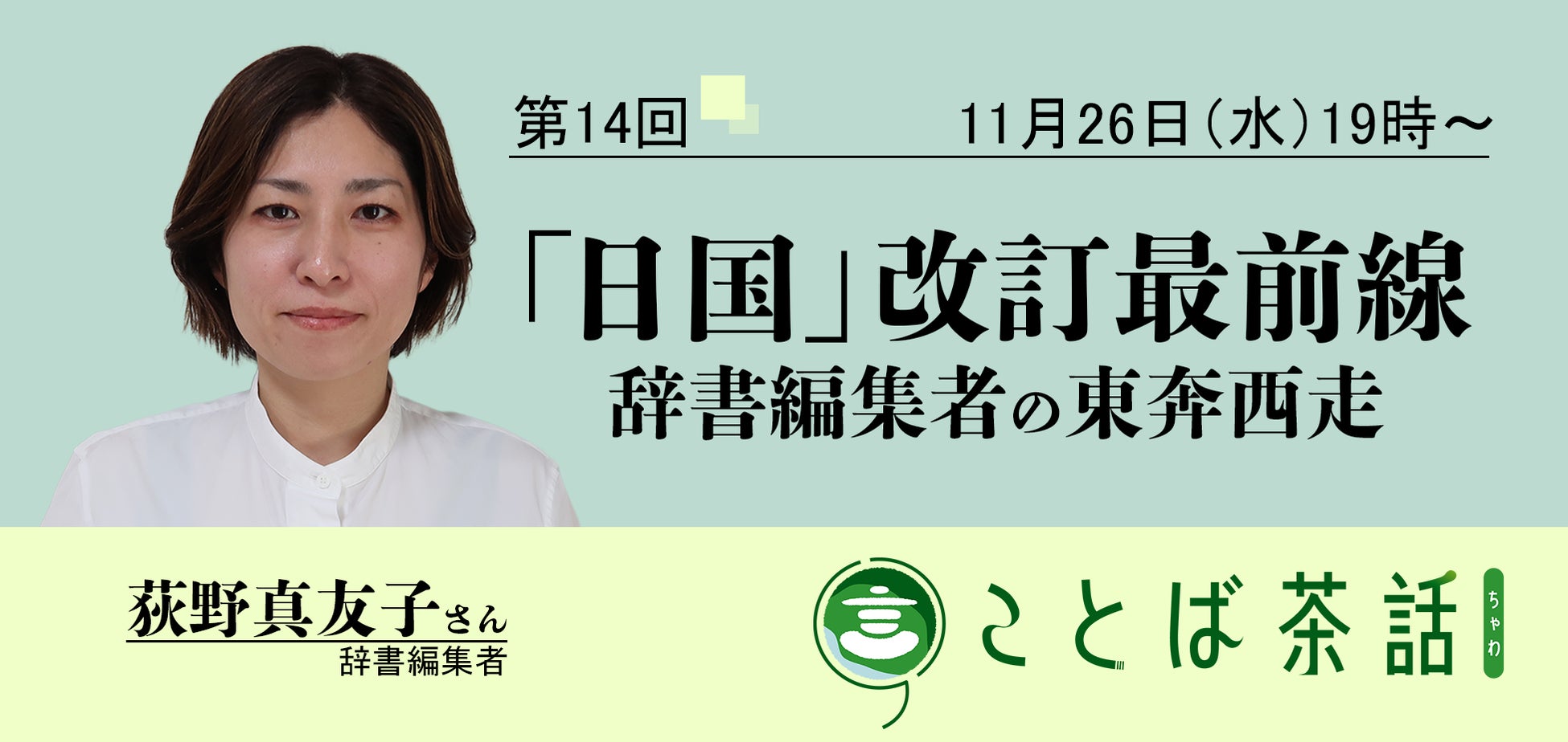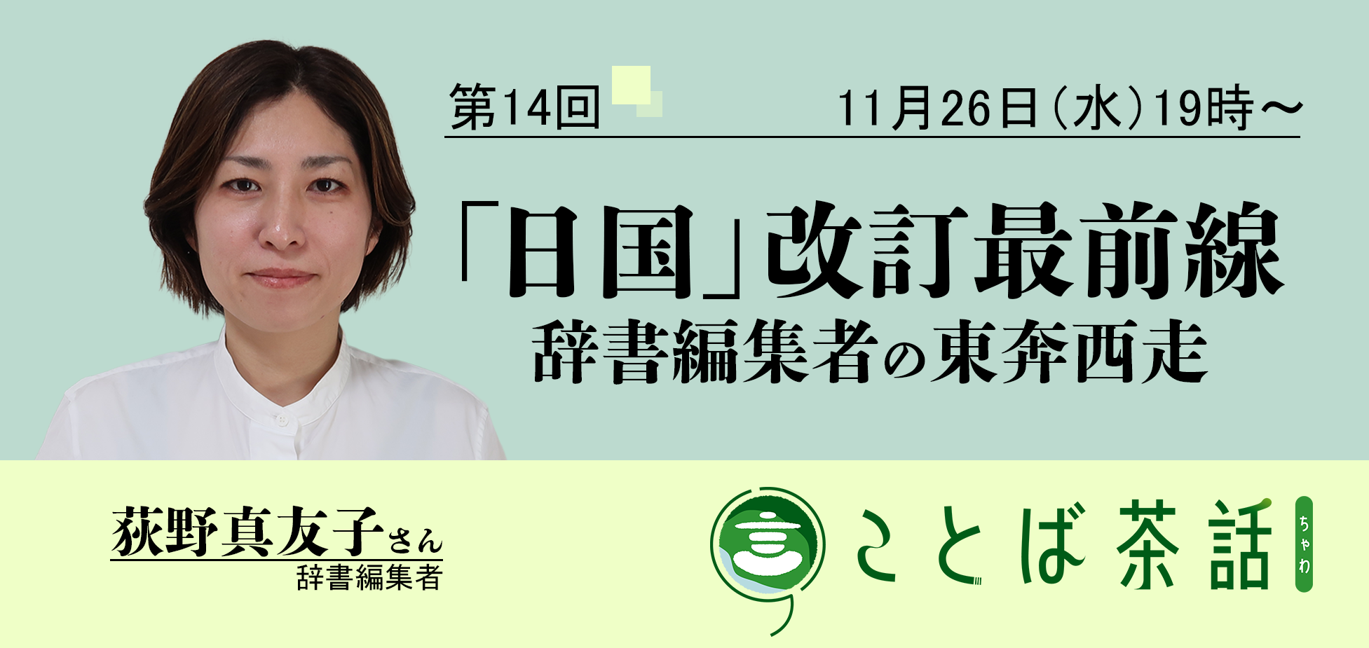 11月26日(水)開催の第14回ことば茶話は辞書編集者の荻野真友子さんをお迎えします。
