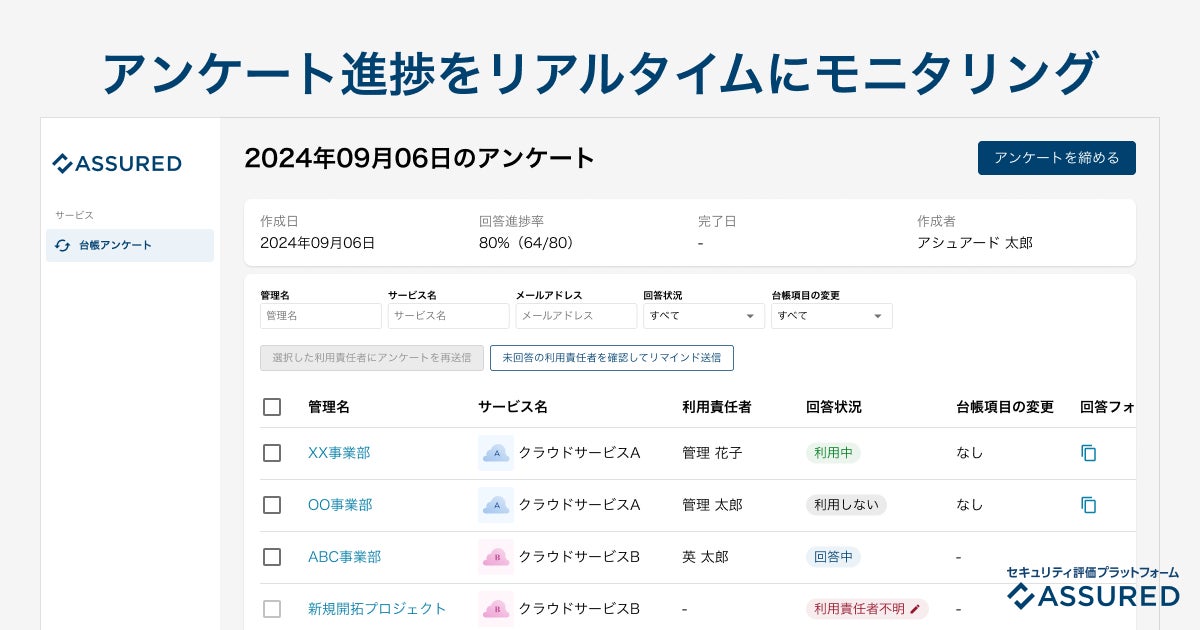 セキュリティ評価プラットフォーム「Assured」、社内における最新のクラウドサービス利用状況を把握できる棚卸しアンケート機能をリリース