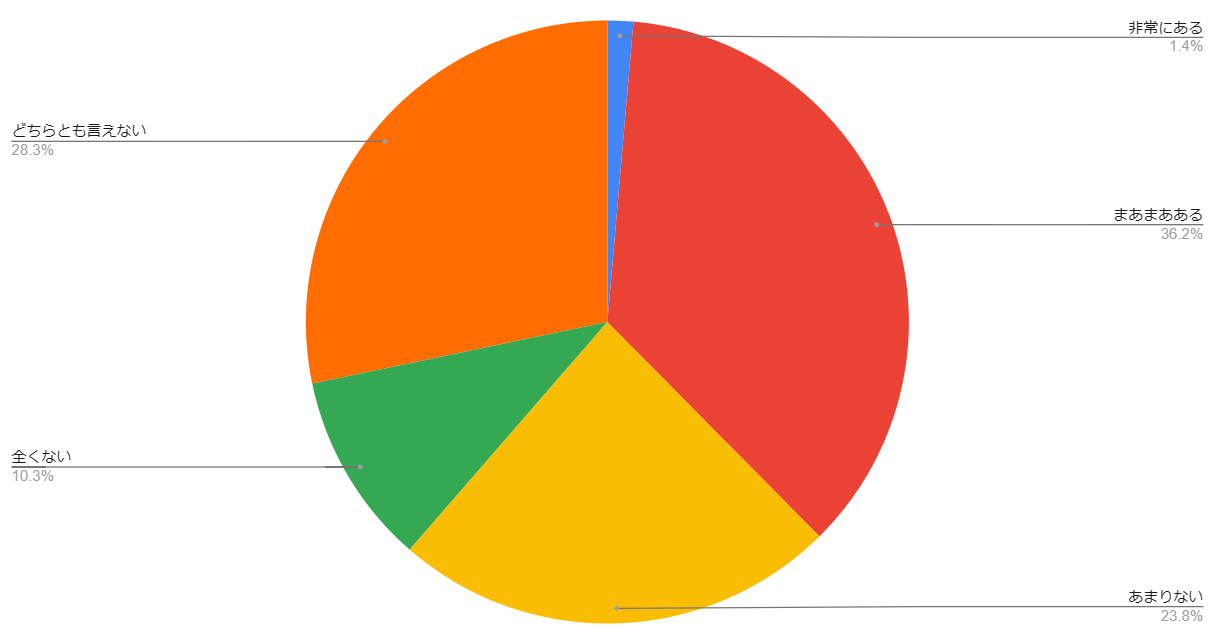 「まあまあある」と、「どちらとも言えない」が多数を占める結果となった。