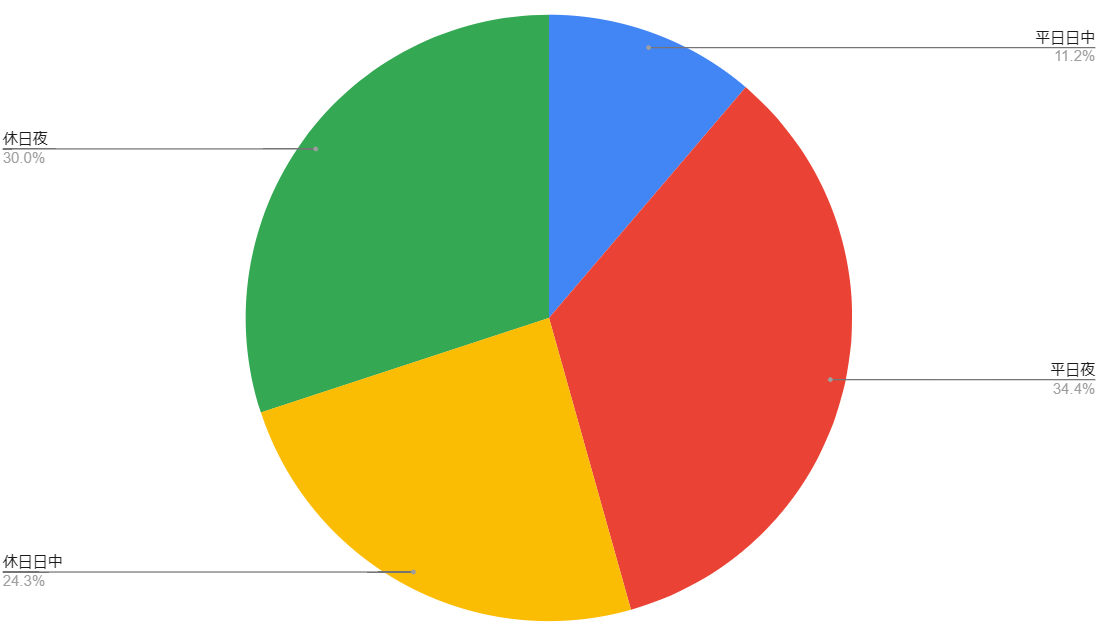 複数回答を可能にしているにもかかわらず、平日の日中の人気のなさが突出している。