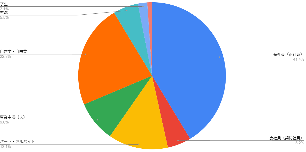 自由業や主婦層だけでなく、実際の社会構成にもより近い形での構成員のアンケート結果を収集することができている。