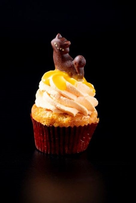 南信州を代表する上品な甘さの市田柿をミックスして焼き上げた生地に柿のクリームとソースでハロウィンカラーに仕立てたカップケーキ。