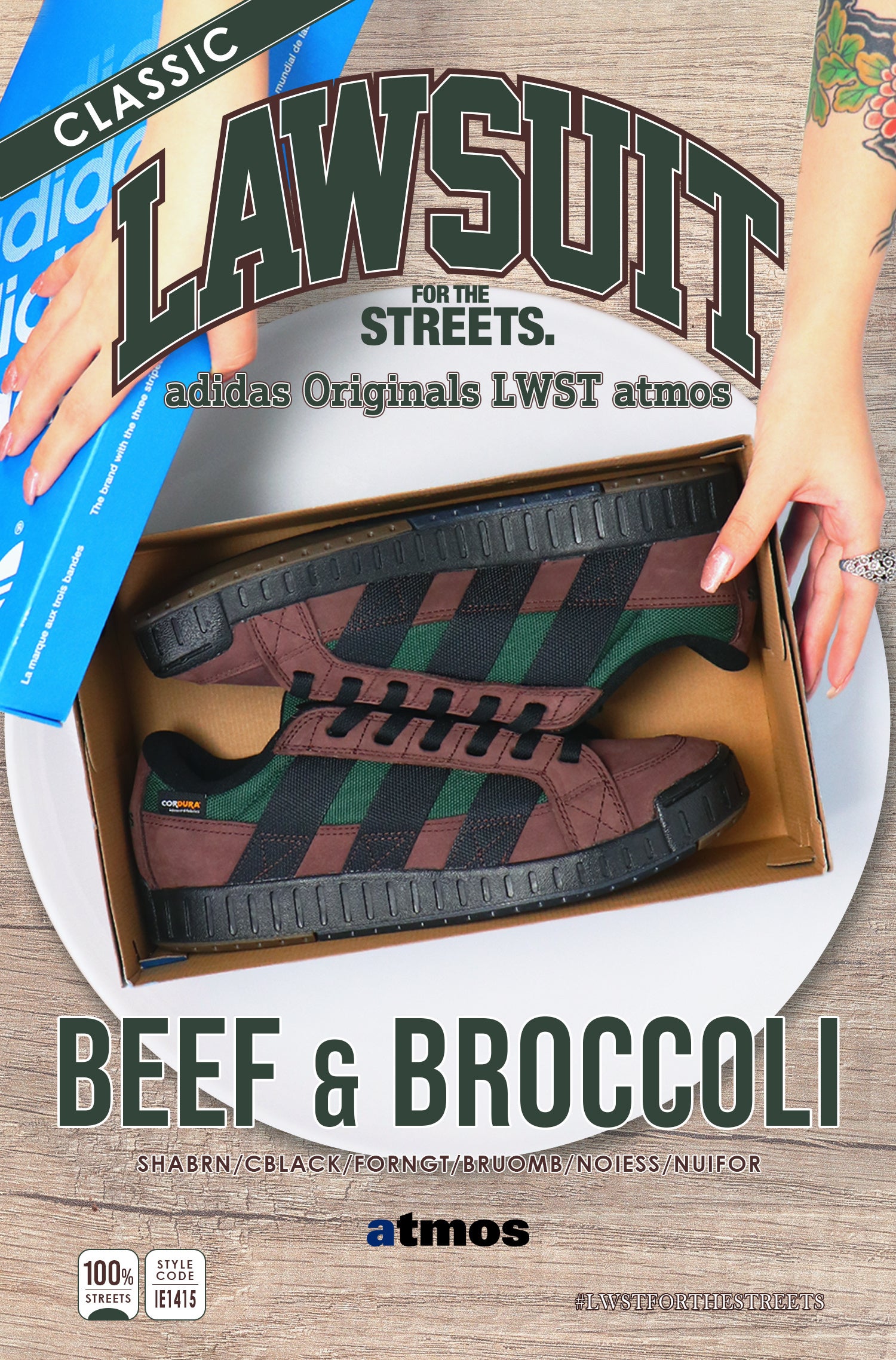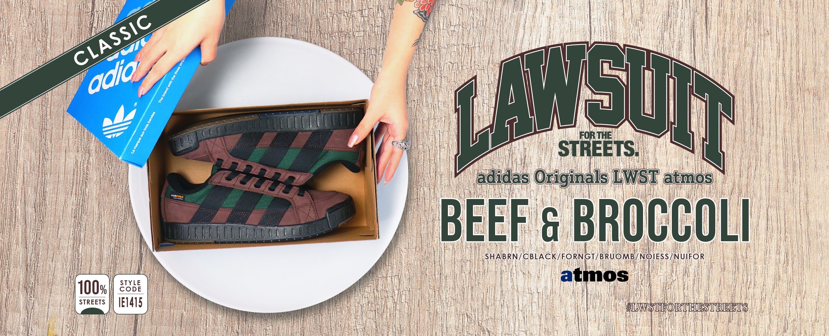 今年復刻を果たした、1998年誕生のadidas Originals「LAWSUIT (ロースーツ)」からatmos別注カラー “Beef & Broccoli”が登場