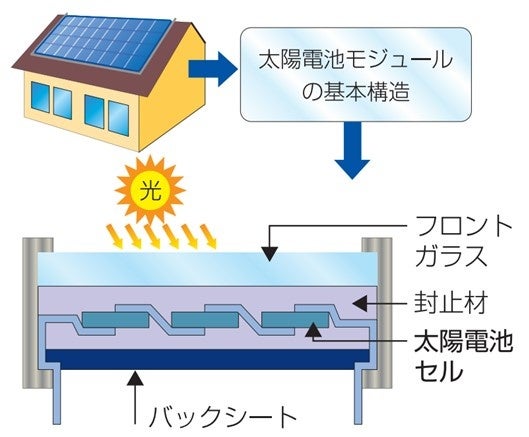 太陽電池用封止材は、太陽電池の内部の電極やセルを保護し、湿気、塵埃(じんあい)、酸素、紫外線などによる外部環境から損傷を防ぐシートです。