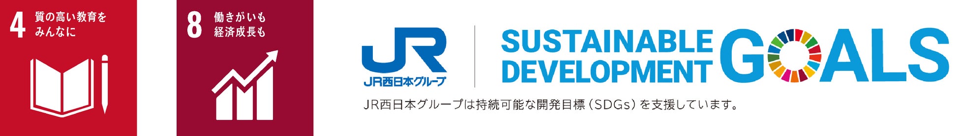 JR西日本ホテルズは、持続可能な開発目標(SDGs)を持ち、地域と共に、お客様一人ひとりの豊かな人生を広げます。今回ご案内の取り組みは、SDGs目標の4番、8番に貢献するものと考えています。