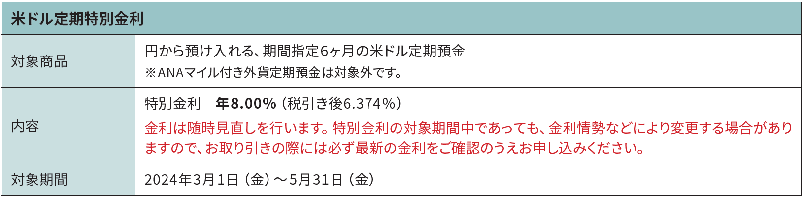 「米ドル定期特別金利」など2企画実施のお知らせ