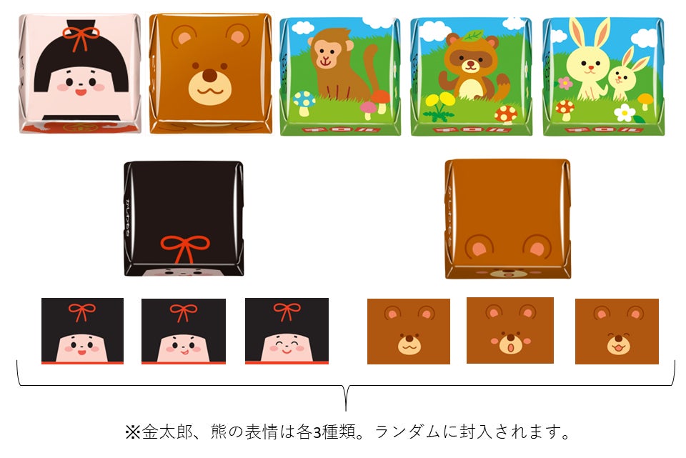 金太郎と熊の顔の表情は各3種類で、体と顔部分を重ねて色々な組み合わせて楽しめる仕様に。